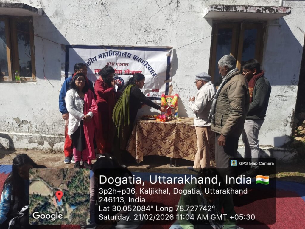 आज राष्ट्रीय सेवा योजना इकाई का चतुर्थ एक दिवसीय शिविर दिनांक 21 फरवरी 2026 दिन शनिवार को राजकीय महाविद्यालय कलजी खाल में आयोजित किया गया,इस कार्यक्रम में कार्यक्रम संचालिका डॉ नीति शर्मा ने आज का मुख्य विषय अंतर्राष्ट्रीय मातृभाषा दिवस तथा राष्ट्रीय एकीकरण में युवाओं की भूमिका के रूप में मनाया, आज राष्ट्रीय सेवा योजना इकाई का चतुर्थ एक दिवसीय शिविर को आयोजित किया गया,इस शिविर में राजकीय महाविद्यालय कलजी खाल के प्राचार्य डॉ के बी श्रीवास्तव जी ने अपने अमूल्य विचारों से बच्चों को अवगत कराया तथा वरिष्ठ प्राध्यापिका डॉ शोभा रावत ने अंतर्राष्ट्रीय मातृभाषा दिवस पर विभिन्न प्रकार की बोली और भाषाओं में अंतर समझाते हुए सभी स्वयंसेवियों को ज्ञानवान किया |
